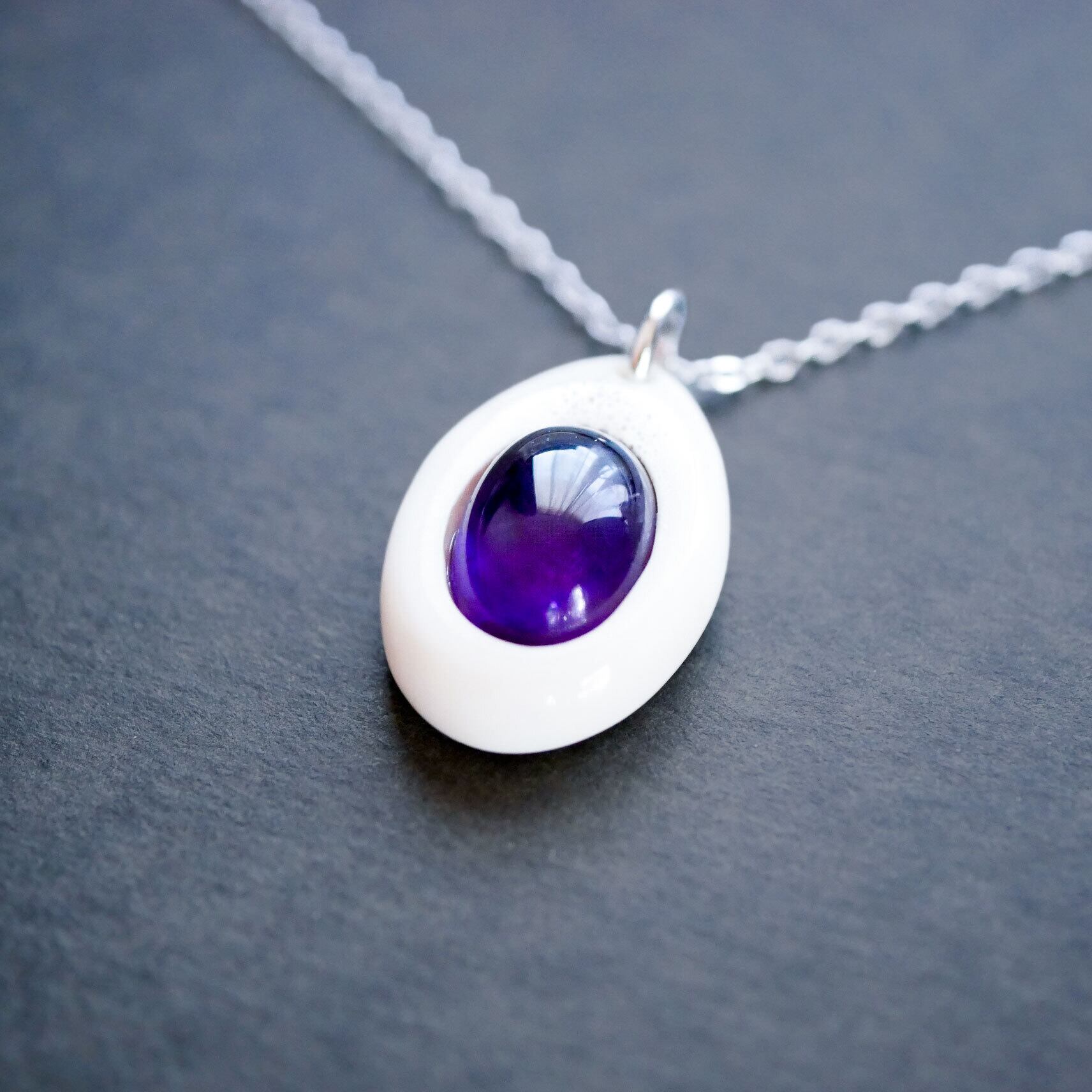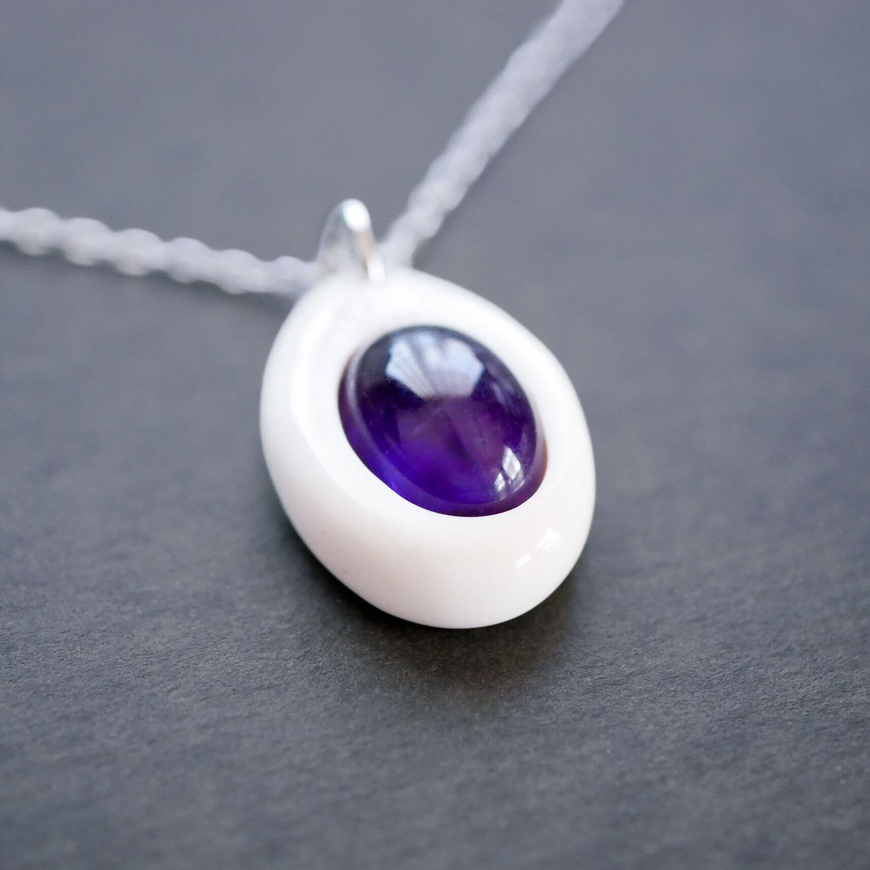 鹿角の台座に、深い紫が美しい天然アメジストを埋め込んだ一点物のネックレスです。
