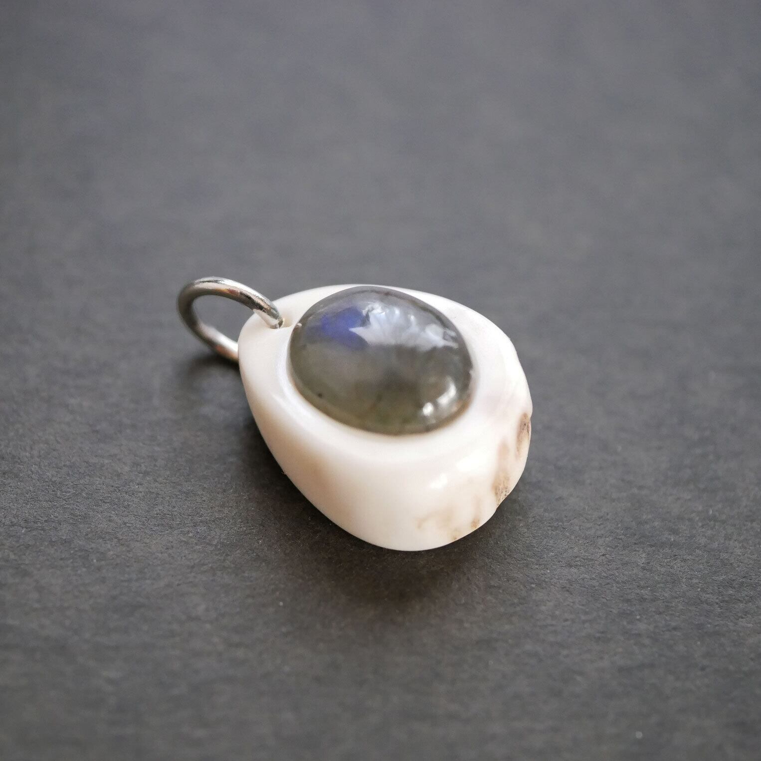 ・薄っすら青いシラーが綺麗なグレーラブラドライトを使用