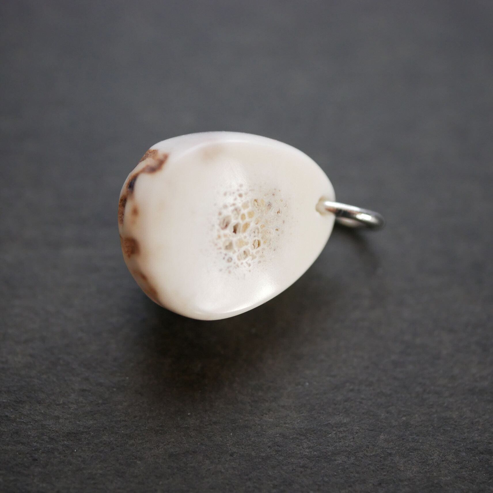鹿角の台座に、青いシラーが美しい天然ラブラドライトを埋め込んだ一点物のネックレスです。
